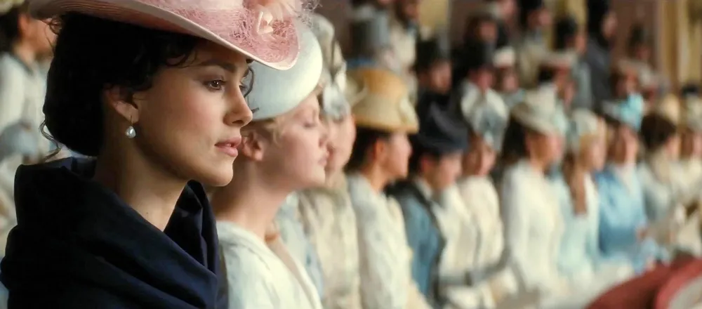 Так же своеобразно, но гораздо более стильно сделаны переходы из камерных театральных декораций в большие и просторные пейзажи русской деревни Левина. Кстати, почему-то дом Карениных, хоть и находится "в театре", но не производит впечатления сцены - обычный такой дом людей из высшего общества того времени. Но оставим же декорации в покое, перейдем к постановке и образам. Супруга, читавшая оригинал честно сказала, что ни один персонаж не похож на себя, и я ей верю, так как она очень хорошо разбирается в классике. Однако следует заметить, что она так же хвалила за грим, который был во многом вдохновлен советской экранизацией и вообще за то, что пусть и сильно разжевано и немного однобоко, но массовый обыватель таким познакомился с произведением. Даже мне было заметно, что создатели не поленились познакомиться с первоисточником, пусть и на уровне хрестоматий и критики. Хотя, говорят, что Кира Найтли не особо утруждала себя подобным чтением. И к ней, из всего актерского состава, больше всего претензий и возникает. Нет, она умеет играть, она без сомнения красива, но она не Каренина. Главная героиня, на мой взгляд, должна быть эффектной, аристократичной женщиной, а Найтли не такая. Она ни разу не эффектна, а аристократичность спадает уже после получаса экранного времени. А уж насколько образу не подходит её мимика, эти её дерганые и почти нервные улыбки и смешки. Это удачно смотрелось в Пиратах Карибского моря и в Домино, но не тут. При этом, вспоминая Гордость и Предубеждение, подобная игра кажется еще страннее, так как там Найтли играла спокойней и сдержанней. Возможно, таким образом должно было быть показано не стабильное ментальное состояние Анны, но к концу она превращается в просто истеричную психопатку.