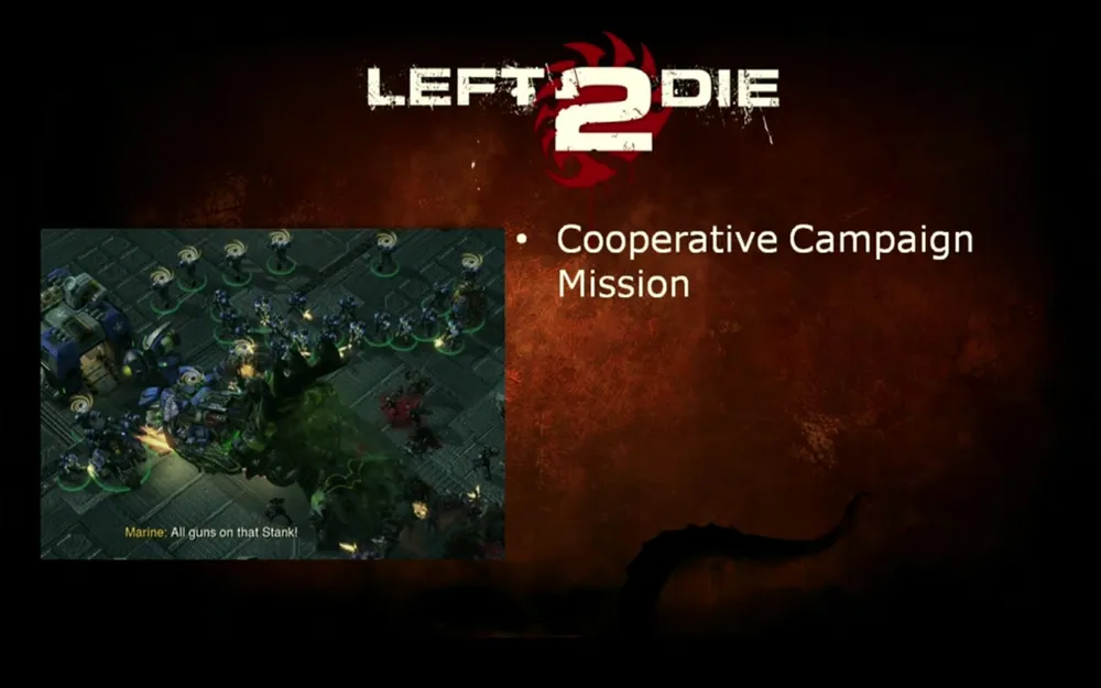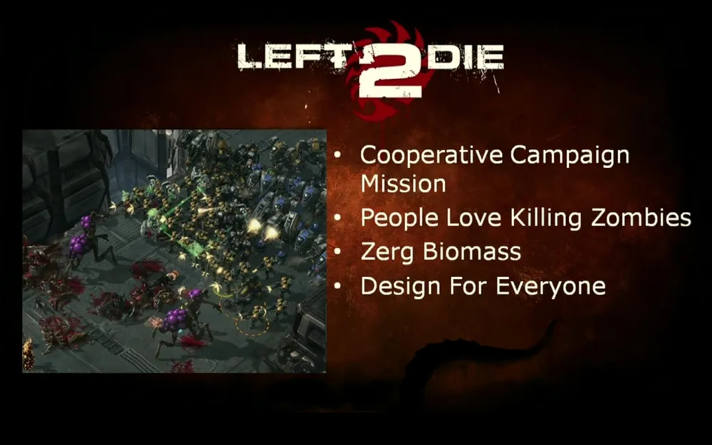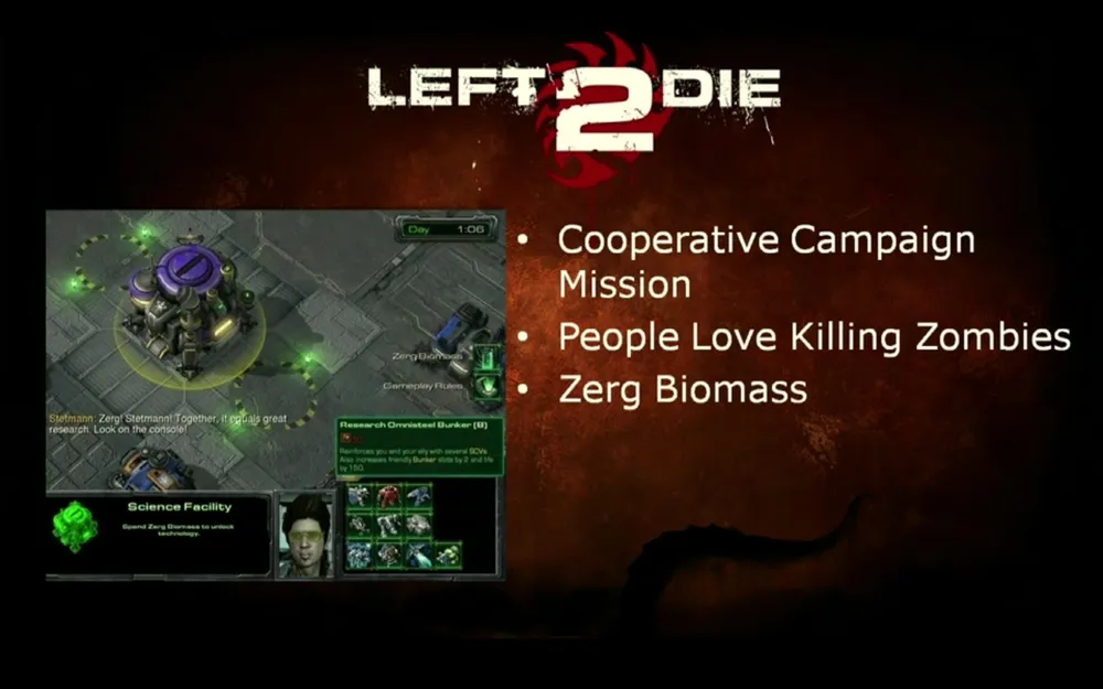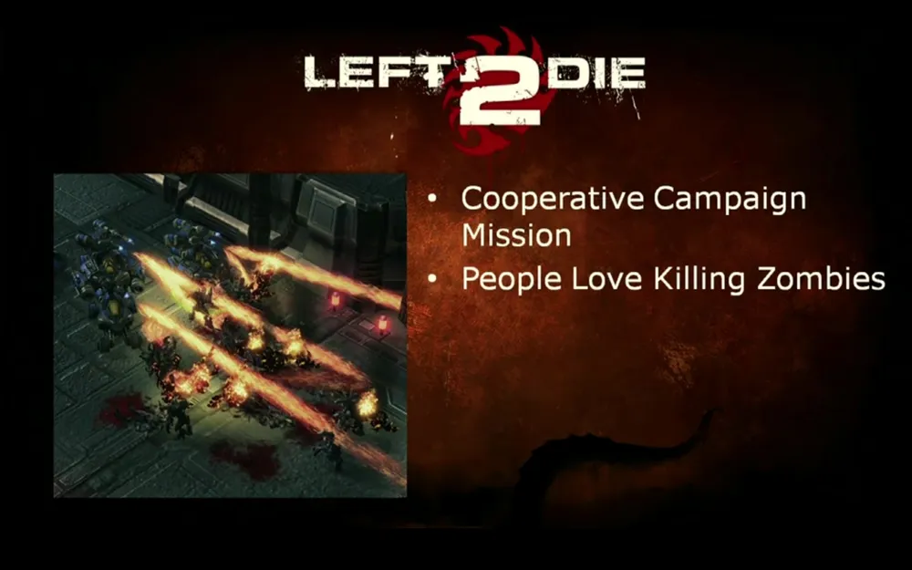 Left 2 Die является кооперативным ремейком сингловой миссии Outbreak (где стоило атаковать лишь днем), что получила массу хороших отзывов из сообщества. Нам предстоит получать очки исследования уничтожая здания Зараженных днем, возводить защиту базы, строить юниты против орд зерговских зомби.