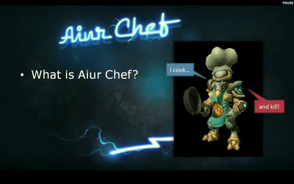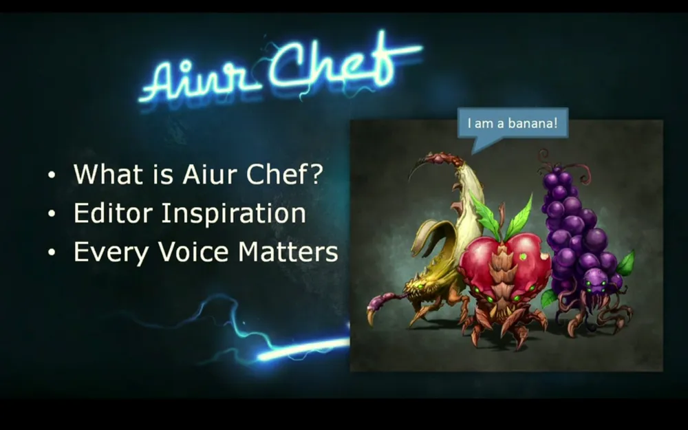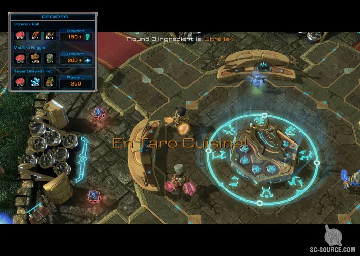 Вам предстоит собирать ингредиенты, убивая разных существ (зергов), иногда сражаясь даже до смерти, чтобы получить тот или иной ингредиент. Кто больше наберет очков к концу трех раундов, тот и получит звание лучшего "Аиурского Шеф-Повара". Идея карты пришла после того, как разработчики просматривали список юнитов в редакторе карт Ск2 (видимо тут нам будут намекать, что для победы нужен наилучший микс юнитов ака всяких ингредиентов в виде овощей и тому подобной мелочи).
