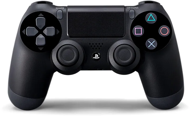 Важным новшеством игровой консоли стал и новый контроллер DualShock 4, который включает массу функций, известных уже благодаря слухам. Он может предложить улучшенный мотор, пониженные задержки ввода, динамик, сенсорную двухточечную панель на лицевой стороне, продвинутые средства позиционирования на основе Move (в том числе многоцветный LED-индикатор на верхней грани), разъём для идущих в комплекте с PS4 наушников и новые кнопки Options и Share. Первая комбинирует функциональность утраченных Select и Start из DualShock 3, вызывая внутриигровое меню.