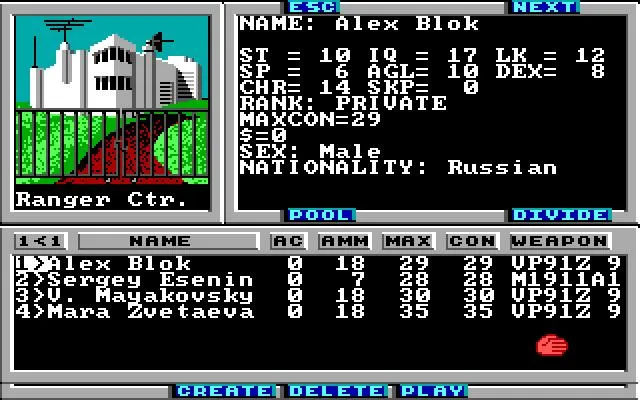 Впрочем, Wasteland не намерен читать морали и делать «а-та-та» сторонникам ядерной гонки. Не загружает талмудами с историей родного края и не заставляет сдавать экзамен. Игра просто выкидывает нас в огромный мир, где парадом руководит необоснованная жестокость. Стартовая компания рейнджеров не блещет параметрами, поэтому настоятельно рекомендуется выгнать всех дармоедов и создать свежих персонажей. У каждого героя пустошей есть набор базовых характеристик. Интеллекты, харизмы, ловкости и т.д. Как и полагает классике жанра. Об утонченности SPECIAL и речи не идет – некоторые параметры значительно важнее других. Рероллить параметры придется долго, если мы хотим добиться приемлемого варианта. Без интеллектуального богатства и зачатков ловкости выход в большой мир нам заказан. Выбор пола и национальности – малозначительный фактор. Устроить бабий бунт или пройтись по пустошам русским катком нам никто не помешает. Да, как ни странно, на наших сограждан в мире Wasteland никто зла не держит. Никто не выкрикнет обидную считалочку про коммунистов и не порвет на наших глазах красный флаг. Политкорректность-таки победила, пусть и с небольшим опозданием.