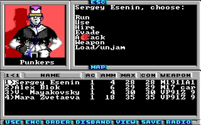 К каждому бою приходится основательно готовиться. Если на рейнджеров нападает пара кроликов, то дело обойдется легким испугом и небольшими царапинами. Более серьезные противники запросто оставят мокрый след от искателей приключений. Враги распределены по пустыне достаточно ровно. Поэтому, выполняя квесты, шанс нарваться на непобедимого оппонента невелик. Главное – вовремя покупать обновки и следить за здоровьем героев. Классическая пошаговая система сражения достаточно проста. В основном рейнджеры будут либо атаковать монстров, либо уворачиваться от их ударов, если хитпоинты задумают кончаться. На перезарядку или смену оружия придется потратить ход выбранного героя. Убегать от проблем особого смысла нет. Вооруженные хорошими стволами враги расстреляют давшего деру рейнджера за милую душу. Важную роль в боевой системе Wasteland играет расстояние до противника. Приходится постоянно прикидывать, с какой дистанции нанести удар. На первых этапах эффективнее всего не заморачиваться с огнестрелом и бить оппонента по наглой морде вплотную. Скилл Brawler – в помощь юным милишникам.