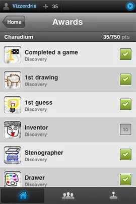 Стоит отметить писькометричную систему рейтингов и достижений в Charadium. Тут все просто как и на GAMER.ru или в любой другой современно игре. Есть уровень, есть достижения, получить которые можно напрягая свой мозг в нелегком бою против капитана рисовалки ©.