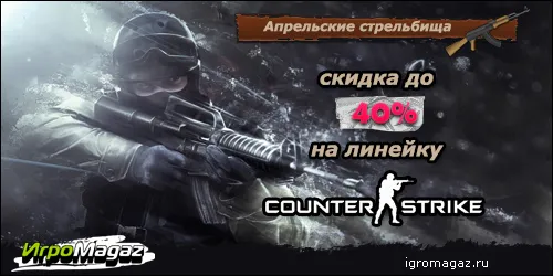 Дорогие друзья, спешим сообщить о том, что до конца апреля в интернет-магазине для геймеров ИгроMagaz.ru вас ждут скидки до 40% на игры серии Counter-Strike.