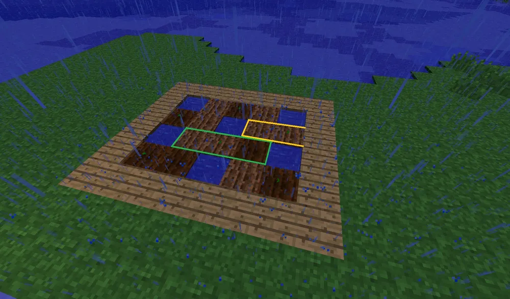 4. Закрываем воду полублоками, чтобы не навредить нашей ферме.