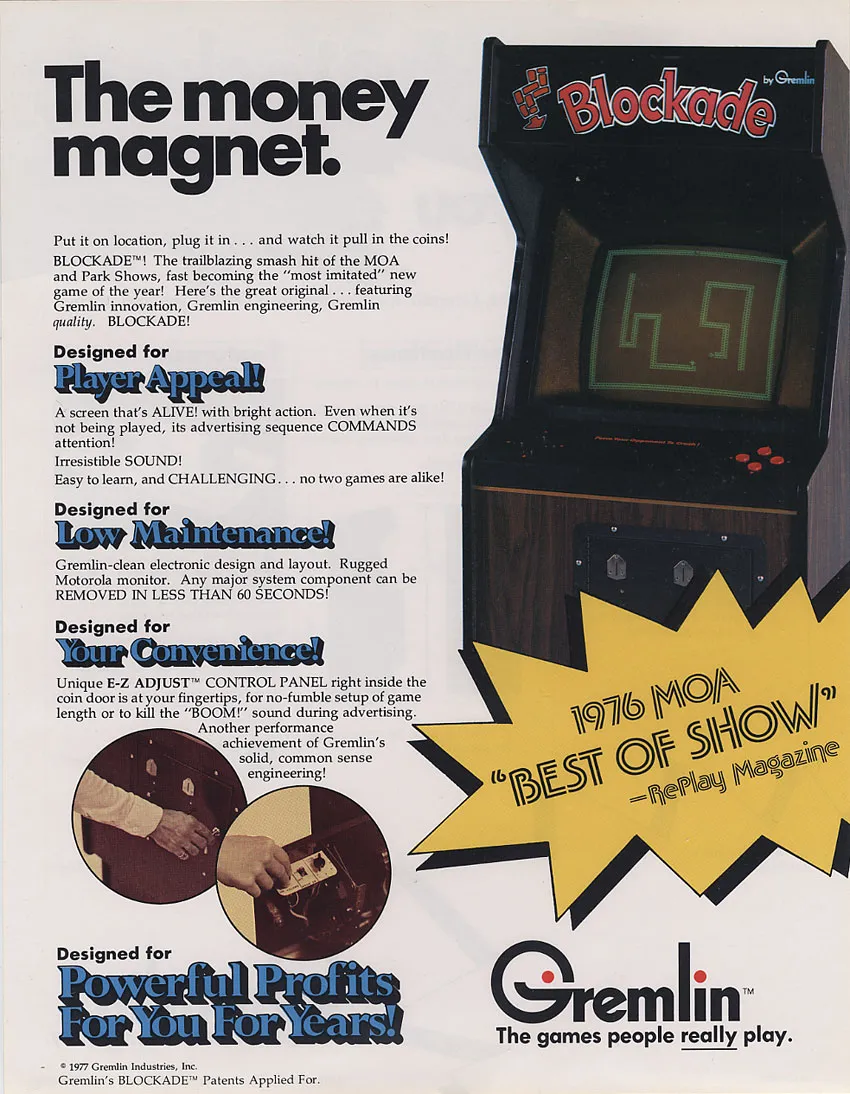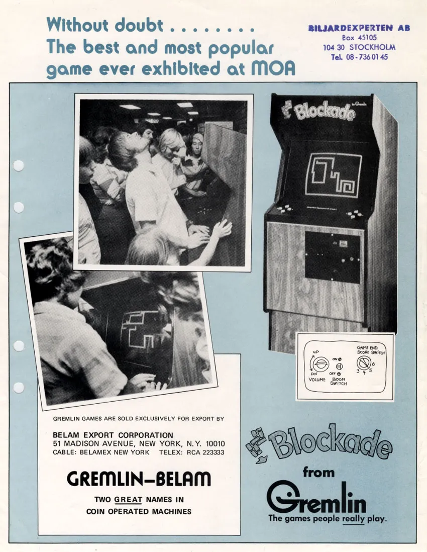 Blockade игра на аркадных автоматах, разработанная и изданная "свеженькой" компанией Gremlin, в октябре 1976 года.