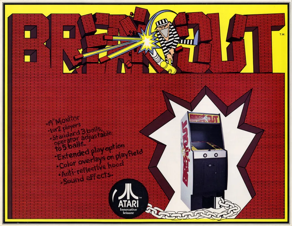 Нолан Бушнелл (человек дойстойный моего восхищения) хотел превратить понг в однопользовательскую игру, где игрок также крутил бы крутилку и разбивал бы мячом кирпичную стену. Бушнелл был уверен, что такая игра была бы популярной. Нолан вместе с Стивом Бристоу начали работу над концептом, Ал Алкорн был назначен менеджером этого проекта и в 1975 году подключили к разработке компанию Cyan Engineering.