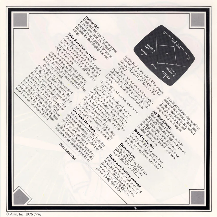 Flyball аркадный симулятор бейсбола, выпущенный Атари в июле 1976г.