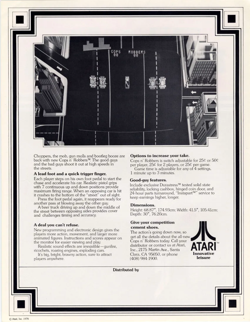 Cops n' Robbers одна из первых игр на 4х игроков (чаще всего игры на 4х человек были только коктейльных версиях). Вышла в июле 1976 года, под флагом Атари.