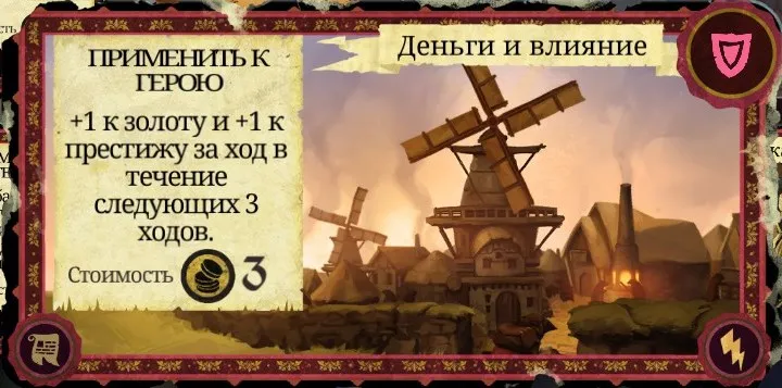 У карт хитрости красная рамка. Их, как и заклинания, можно условно разделить на полезные и вредящие. Использование карт хитрости может стоить вам части золота, очков престижа или же прибавить вам очков гнили.