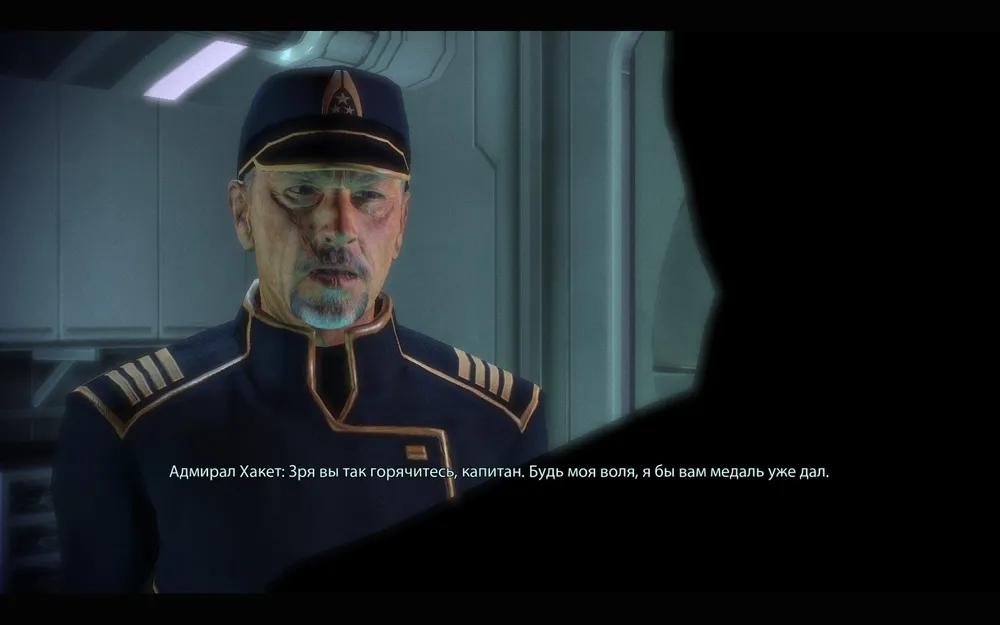Дебрифинг Хакет провел лично, прибыв на "Нормандию". Адмирал полностью на нашей стороне, но предупреждает, что батарианцы просто так про колонию не забудут. И если между ними и Альянсом разразится война, будет плохо всем, кроме Жнецов. Хотя улик для объявления войны все же маловато.