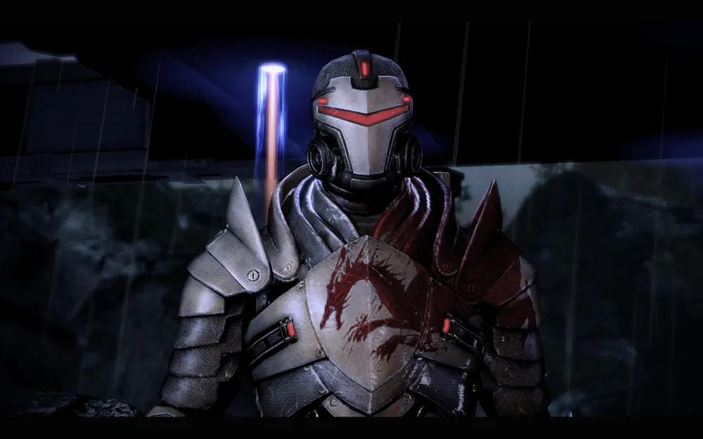 Отбившись от батарианцев и открыв ворота ангара, покидаем базу на челноке. Кстати, в этот момент нам показывают забавную сцену, где кучка охранников сгорает в пламени из двигателей челнока.