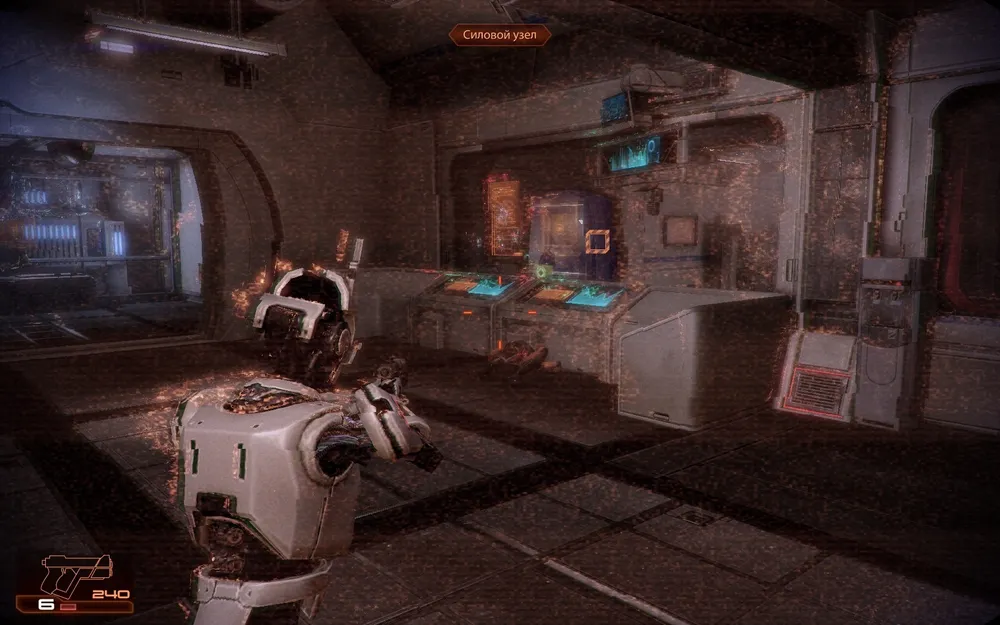 И вот мы уже глядим на мир глазами железяки, расстреливаем врача, несколько таких же железяк и оканчиваем свою короткую механическую жизнь взрывом силового узла, открывая дверь Шепарду.