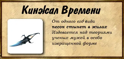 Казалось бы, что забыли кинжалы в нашей галерее всеуничтожающего? Есть же замечательные неподъемные двуручники, за один замах уничтожающие целые города с их вечно недовольными жителями. Есть моргенштерны, превращающие черепную коробку врага в нежное пюре с малиновым оттенком. Или здоровенные дубины, сокрушающие целые горные хребты. Кинжал – это вроде бы мелочно. Но персидские мальчики с горящими глазами могут кое-что противопоставить этому расхожему мнению. Имя миниклинку с дециметровым лезвием – Кинжал Времени. Именно с его помощью заслуженные некроманты из Ubisoft при помощи доброго призрака Мехнера реанимировали Prince of Persia. Паранормальные особенности ножичка связаны с возможностью вращать четвертым измерением с залихватской удалью. Принц Безымянный, сын своего папаши, захватил власть над сим артефактом и нарушил ход мироздания. Кинжал помог ему справиться с многочисленными монстрами, возникшими после небольших пертурбаций во времени и пространстве. С помощью этого оружия принц смог отматывать время, словно пленку в кассетнике, замедлять течение времени и ставить противников в ступор. Полезная вещь, безо всяких сомнений. Даже лампа Алладина серьезно уступает в популярности среди ближневосточных оружий массового поражения.