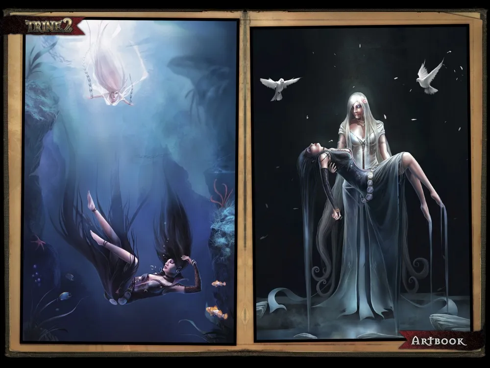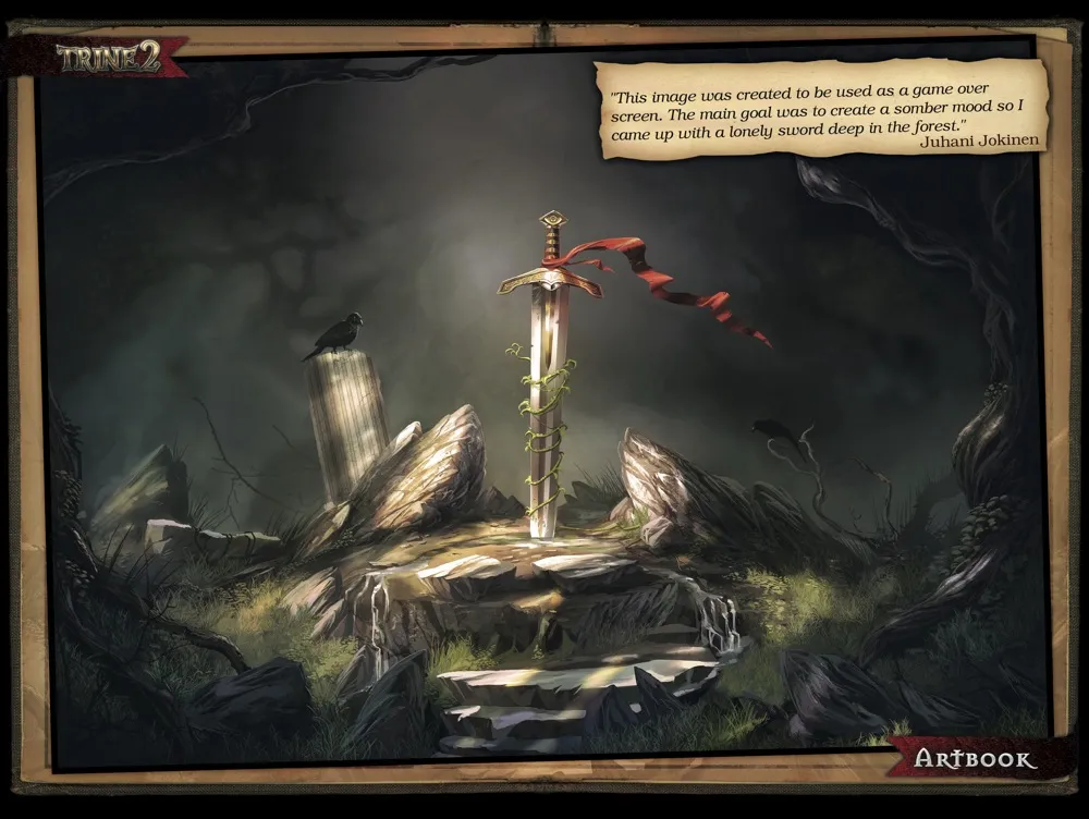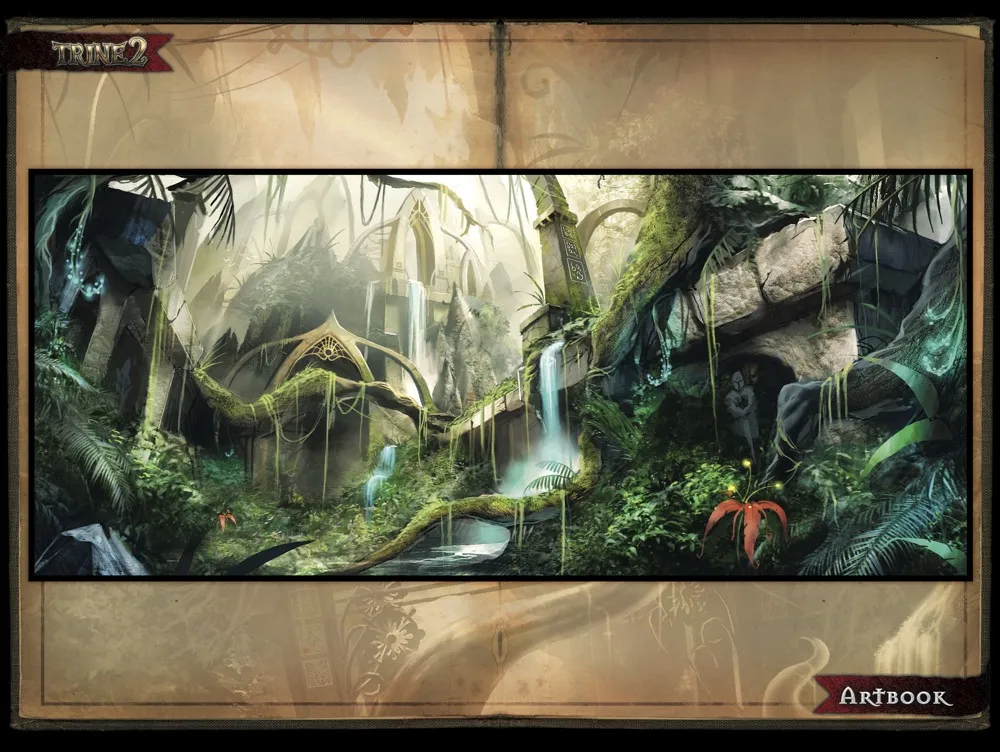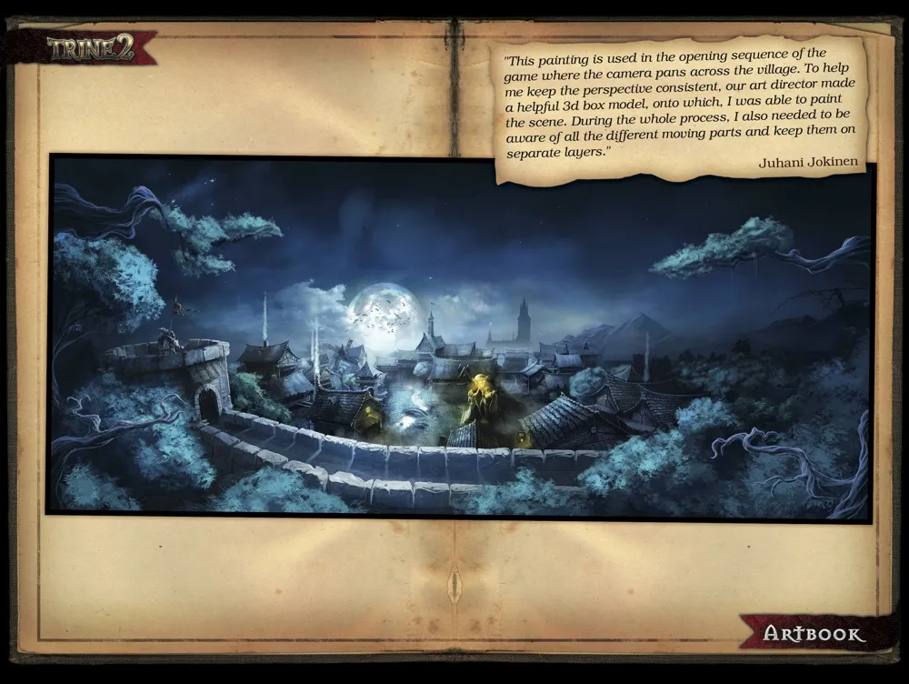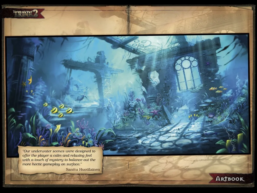 Полноценный качественный артбук по определению не может быть размером меньше тетрадки. Сравнивая картинки отсюда с нашим, скажу что тут они заметно светлее. Весь арт есть, у нас даже больше - например вот эти два кусочка полноценные http://www.gamer.ru/system/attached_images/images/000/465/039/original/Trine_2_Digital_Artbook_Page_11.jpg?1323791426