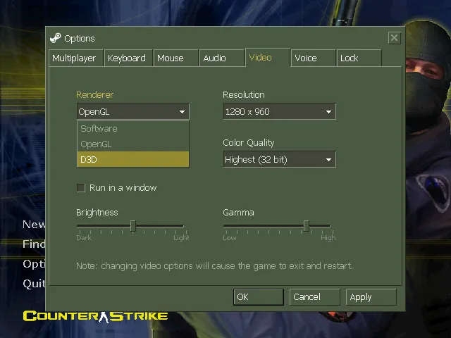 У меня стали появляться артефакты в CS 1.6 на формате видео OpenGL