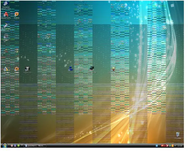 Ну так вот из за чего это происходит. Чаще всего это случается с видео картами ATI, сделанные маленькими китайскими ручками. Видеокарта перегревается и теряется связь между точками изображения. Так же могла сдохнуть память в видюхи по причине брака или опять же "перенапряга". Возможно, что версия биоса не подходит.