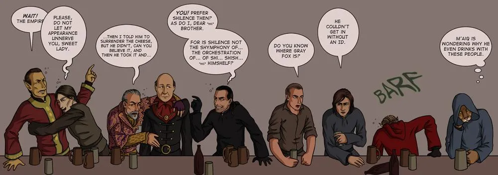 Как Кватч попал в Обливион? о_О Также что ещё можно сказать? Не чувствуется, увы. Нет узнаваемых элементов. На первой картинке активно вытягивает хаджит на заднем плане. На последней - это вообще бытовая ситуация, окружение, одежда стражников, тёмная эльфийка - именно тёмная эльфийка из TES.