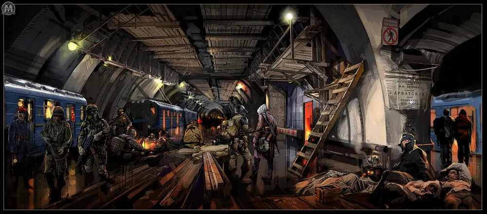 Ну арты не совсем точно передают атмосферу книги на мой взгляд. Слишком много света. По книге, везде преобладает темнота и постоянно полностью освещать станции "по карману" лишь Ганзе и Полису. На артах же везде довольно светло.