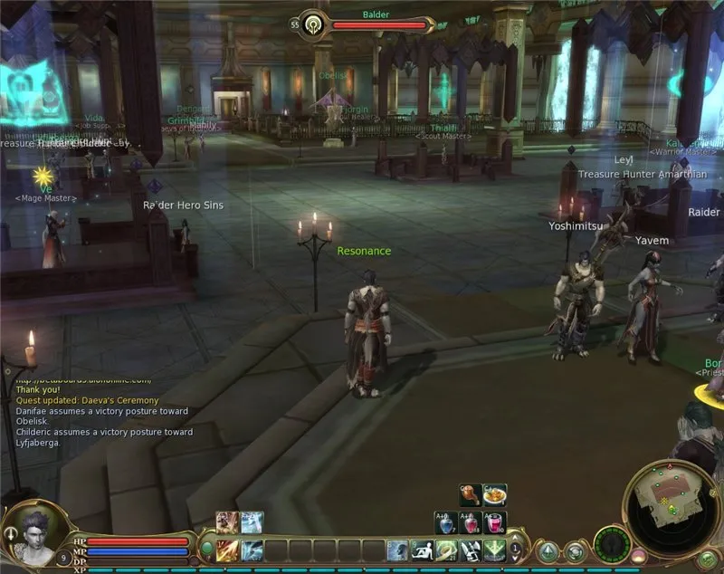Daeva's Ceremony - поговорите с Balder'ом (найти можно по гиперссылке на карту) Поздравляю вы теперь даева, поговорите со своим мастером в зале, чтобы взять 10 уровень, оружие и обучиться новым умениям. Если есть желание, можете вернуться в стартовую локацию и доделать квест The Abyss Gate уже с профой.