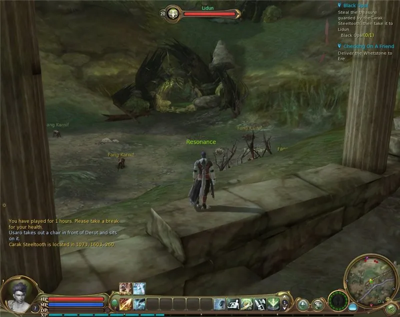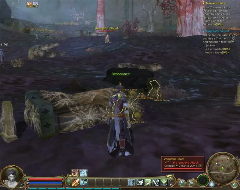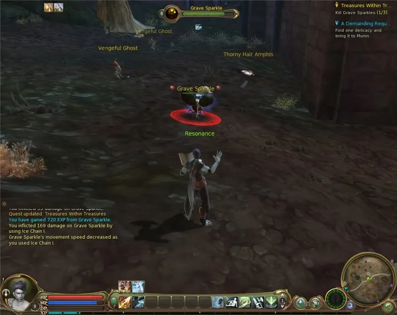 Derot отсылает к Munin'у. Бежим опять на кладбище, там прямо по дороге на верх пока не увидим кристалл. Внутри кристалла Munin. Обновляем задание и идём убивать жуков внизу: