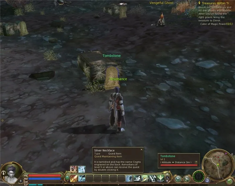 2. Treasures Within Treasures - Возвращаемся на кладбище, там находим надгробную плиту. После её обследования появляется дух, убиваем его и забираем куб и относим Derot'у.