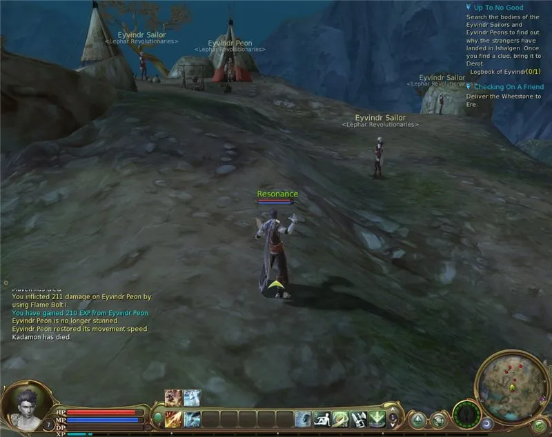 1. The Robbery Plot - летим в стартовую деревню и говорим с Hephe и летим обратно, поднимаемся вверх по дороге и говорим с Alfrigh. Набираем новых заданий