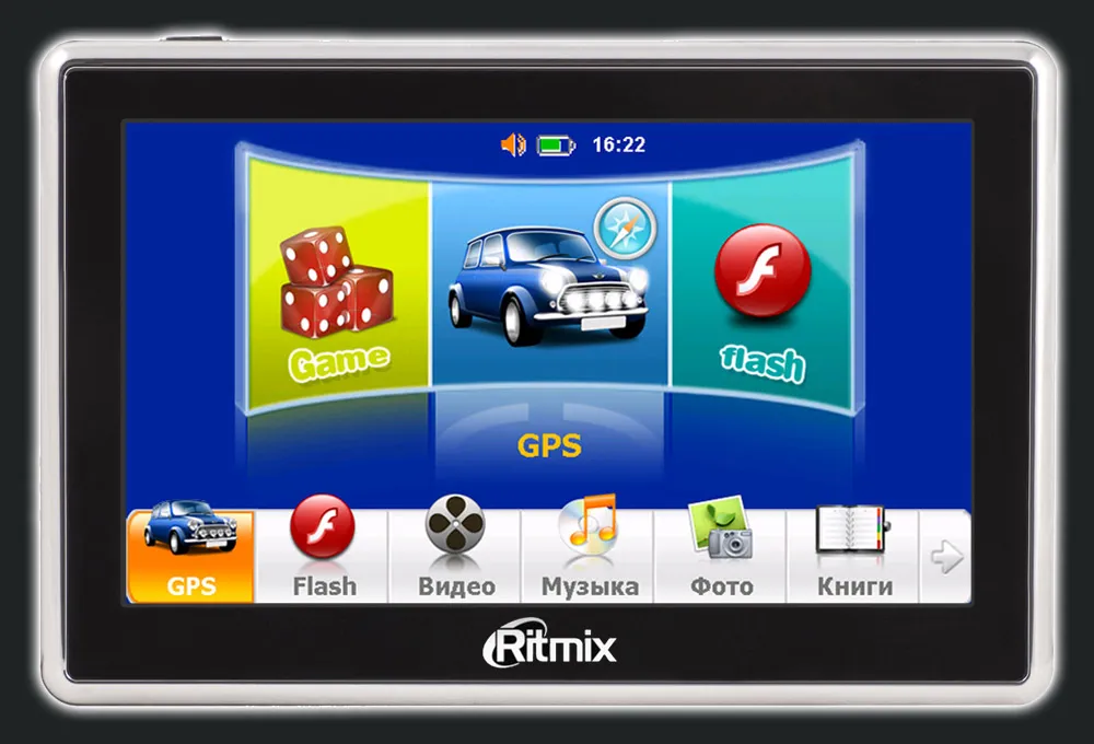 Ritmix RGP-570 – автомобильный GPS навигатор на новом процессоре Atlas 5. Главная особенность устройства – дисплей с повышенным разрешением 800x480 пикселей, которое обеспечивает высокий комфорт работы с программой навигации. С таким дисплеем удобно также смотреть фильмы и играть в игры.