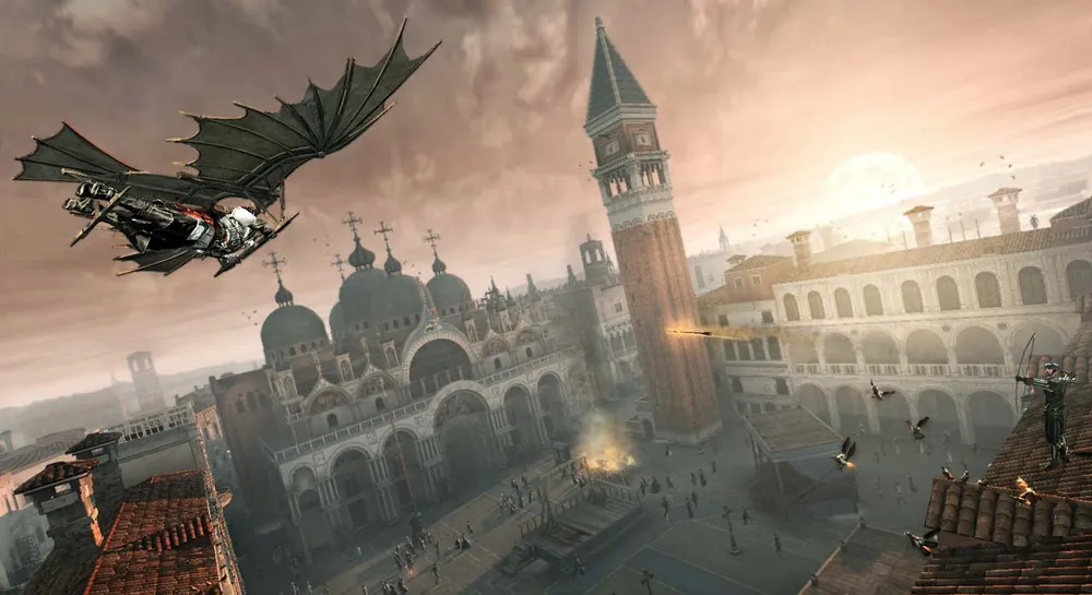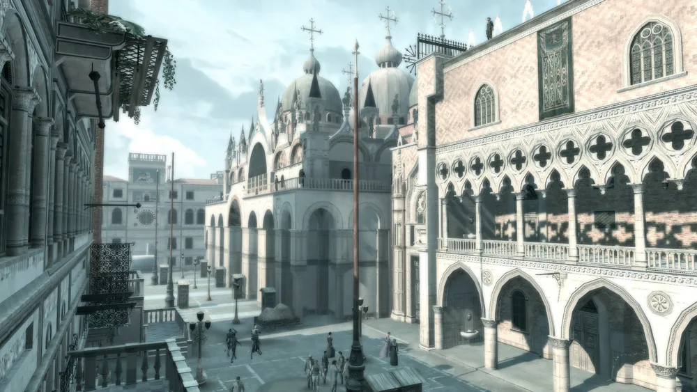 Особо стоит упомянуть нововведение, заключавшееся в визуальном соответствии игровых локаций их реальным прототипам и ставшее, начиная с «Assassin's Creed II», одной из главных фишек серии. Если Иерусалим, Дамаск, Акра из первого «Ассасина» лишь своими названиями связаны с одноименными городами из нашей реальности, то виртуальные Флоренция и Венеция действительно похожи на самих себя настоящих. Это сходство достигалось за счет включения в стандартную и по большому счету однотипную внутриигровую застройку существующих на самом деле памятников архитектуры – как правило, церквей и палаццо. Магию сего дизайнерского приема я в полной мере испытала на себе. Ведь именно после нашей семейной поездки в Венецию началось мое увлечением Ассасинами. Глядя на дочу, с восхищением узнававшую реальные здания по их виртуальным воплощениям, я вдруг поймала себя на мысли, что тоже хочу приобщиться к этой игре.