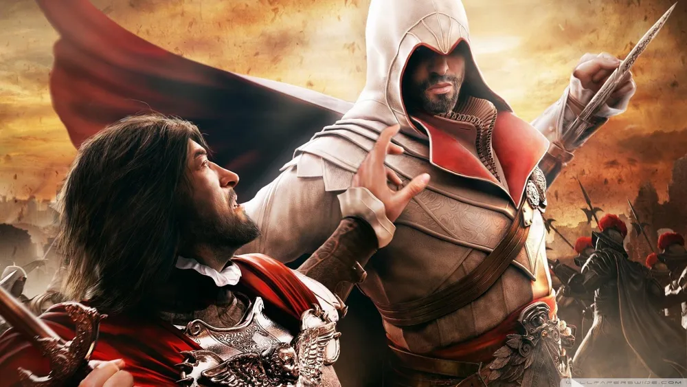Если «Assassin's Creed II» стала подлинным прорывом для серии, то релизнувшаяся год спустя, в 2010 г., «Assassin's Creed: Братство Крови» – это следующий шаг вперед, завершивший формирование ее [серии] геймплейных основ. Место действия в прошлом практически не изменилось – мы все также в Италии, а точнее, в Риме 1499–1503 гг. Базовая локация современности тоже нам уже знакома – вилла Монтериджони, фамильное гнездо рода Аудиторе из второй части, но только пять сотен лет спустя. В геймплейном отношение настоящее заметно улучшилось, стало динамичнее и интереснее. Дезмонд проявляет все больше активности и сарказма, отпускает забавные колкости в адрес своих спутников, которые и сами не прочь вставить друг другу пару едких «шпилек». Игра позволяла в любой момент прервать лёжку в Анимусе и дать нашему мистеру Майлсу немного развеяться и размяться – поболтать со спутниками, ознакомится с новыми электронными письмами, наконец, выбраться на свежий воздух и прогуляться по ночному городку, поискать кое-какие коллекционные предметы. Все это работало на укрепление эмоциональной связи между игроком и протагонистом и ощутить его развитие как персонажа и как члена группы. Ну а ближе к финалу мы сможем геймплейно ощутить то влияние, которое Анимус оказал на Дезмонда. Из скромного неумехи времен первого «Ассасина» он превращается в скиллованного паркурщика, совершающего умопомрачительный забег по балкам и уступам под стать своим героическим предкам.