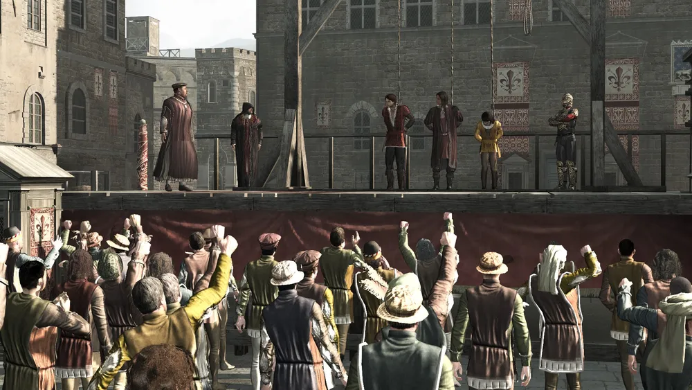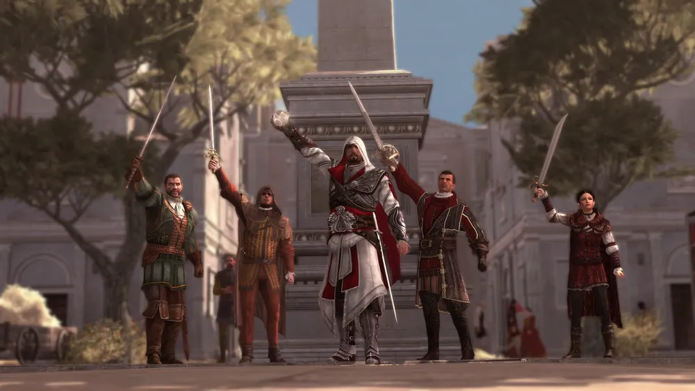 Прошлое, по-прежнему занимающее львиную долю игрового контента и времени, подверглось не столько принципиальной переделке, сколько усложнению, хотя и без нововведений тоже не обошлось. Основным из них стало создание собственного Братства. Если в «Assassin's Creed II» наш герой был мстящим одиночкой (и формально даже не членом Братства ассасинов), то теперь он становится Наставником – сперва де-факто, потом де-юре – и обзаводится своими собственными учениками. Основополагающая идея «Братства Крови» заключается, на мой взгляд, в противопоставлении двух типов лидеров, воплощенных в образах Эцио Аудиторе и Чезаре Борджиа. Оба мечтают о единстве, однако понимают его по-разному и идут к нему разными путями. Путь Чезаре, или Путь тамплиеров, пролегает через насилие, устрашение, подавление, это Путь деспотии. Напротив, Путь Эцио, или Путь ассасинов, подразумевает взаимное уважение, взаимопомощь и принятие ответственности за последствия своих действий. Это Путь свободы, причем не «свободы от», а «свободы для». Чезаре (игровой) стремится объединить всю Италию под своей властью, которую насаждает мечом и подкупами. Его амбициям и методам Эцио противопоставляет объединение граждан в союз равных, идею Братства.