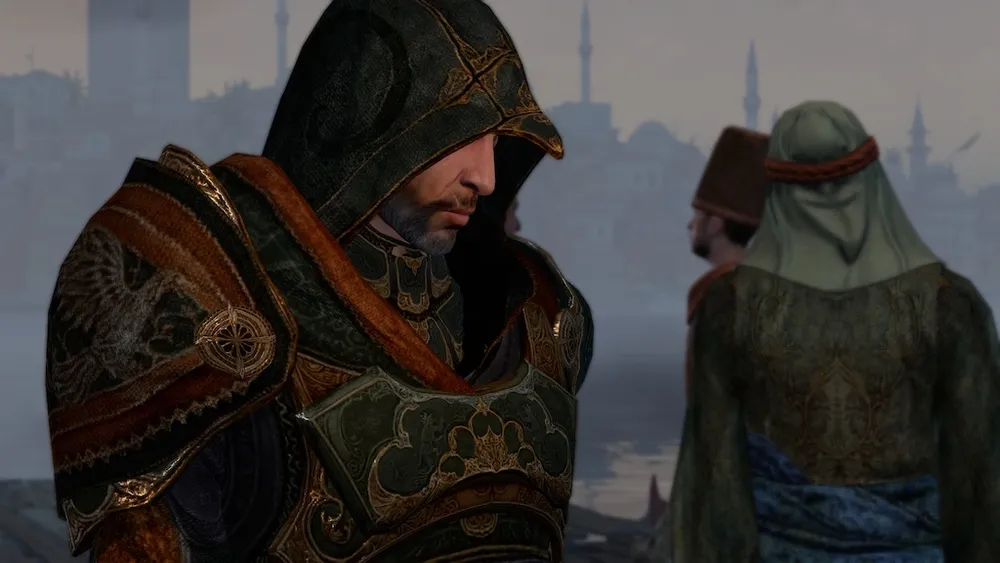 Все трое – Эцио, Альтаир и Дезмонд – являются играбельными персонажами. Мест действия и эпох тоже несколько – Константинополь и Каппадокия 1511 г., Масиаф ХIII и XVI вв. и современность (2012 г.), правда, весьма специфическая. Основную долю игрового времени мы проводим в столице Османской империи в компании сеньора Аудиторе, поседевшего, но не утратившего былой прыти и обаяния. Миссии за Альтаира реализованы как отдельные флэшбеки-воспоминания, в которых присутствуют и паркур, и схватки, и наполненные смыслом беседы. Часть настоящего, входящая в основной сюжет, ограничивается катсценами, разговорами за кадром и «симулятором ходьбы» (хотя это очень сильно сказано: локация наших дней столь мала, что там даже ходить-то толком некуда) – сказался крайне ограниченный срок, отводившийся на разработку игры, чуть менее года. Миссии же, где за Дезмонда дают полноценно побегать, опциональны.