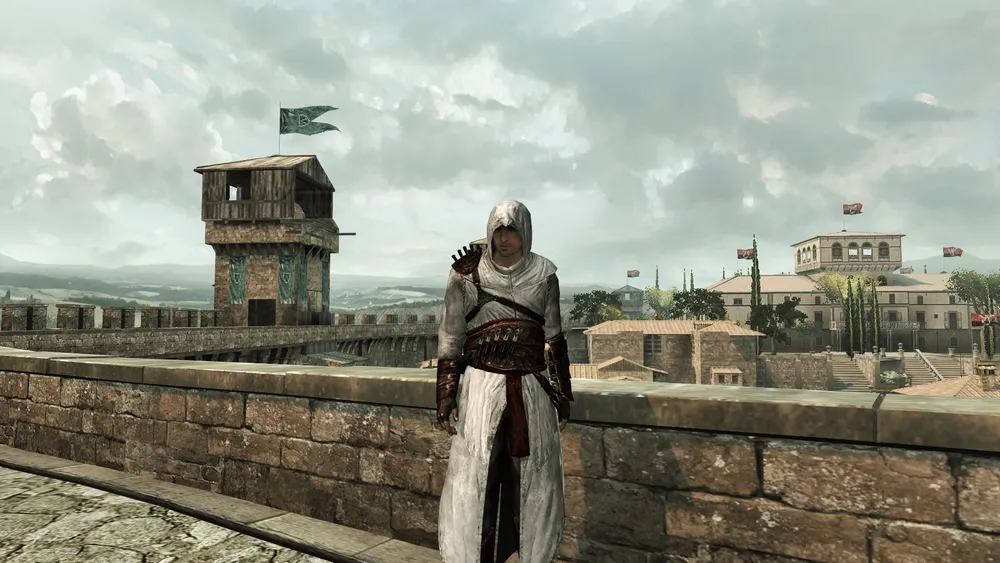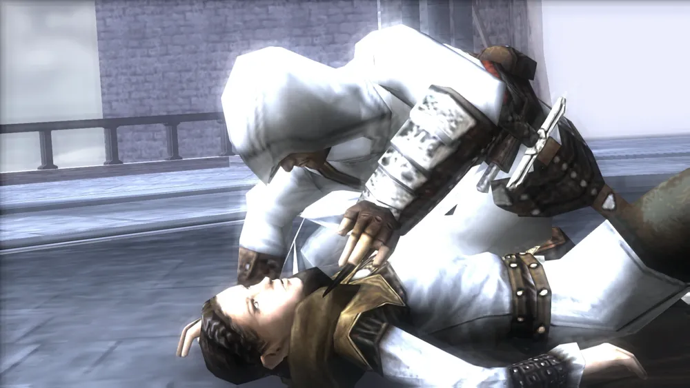 «Assassin's Creed» заложила не только идейные основы серии (противостояние ассасинов, сторонников свободы, и тамплиеров, приверженцев авторитаризма и деспотии), но и символические (скрытые клинки, непременные капюшоны, имя главного героя, так или иначе связанное с орлом), а также, в самом общем виде, геймплейные (паркур без границ, точки обзора с синхронизацией, прыжок веры, орлиное зрение, стелс и открытые столкновения почти в равных пропорциях). Конечно, если сравнить первого «Ассасина» с последующими частями, то он однозначно окажется в проигрыше. Его миссии, как и отдельные задания внутри них, не отличались сюжетным разнообразием и чуть менее чем полностью ограничивались банальным «пришел – собрал информацию – убил – покинул город». (Правда, в повторяемости и цикличности, свойственных этой игре, имелся свой резон: она была заточена под прохождение без пользовательского интерфейса. Но стоило включить HUD, хотя бы миникарту с маркерами заданий, как все плюсы безынтерфейсного дизайна превращались в минусы.) Боевка при доступности ряда комбо на практике сводилась к блокированию ударов противников с последующей контратакой и заскриптованной раздачей люлей или добиванием – так называемая система двойной анимации, просуществовавшая в серии аж по «Assassin's Creed: Синдикат» включительно. И дело тут не в том, что сами комбо были совсем уж однотипными, нет, просто играть от защиты оказывалось в разы проще и эффективнее. Один удачный клик – минус один враг, благо нападали болванчики строго по очереди, а не скопом. Потренироваться в проворачивании того или иного комбо-удара предлагалось на специальной внутриигровой арене. К сожалению, эта весьма пользительная возможность исчезла из серии, начиная с «Assassin's Creed: Братство Крови». Затем она неожиданно появилась в «Assassin's Creed: Unity», а потом снова пропала.