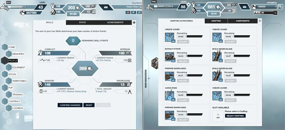 «Assassin’s Creed: Project Legacy»: окна способностей и крафта