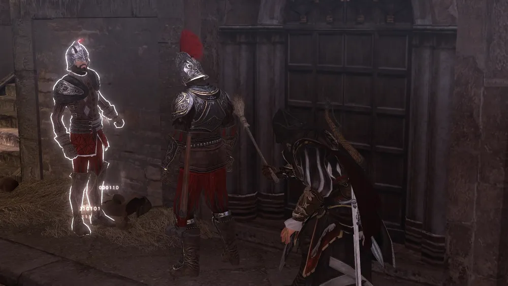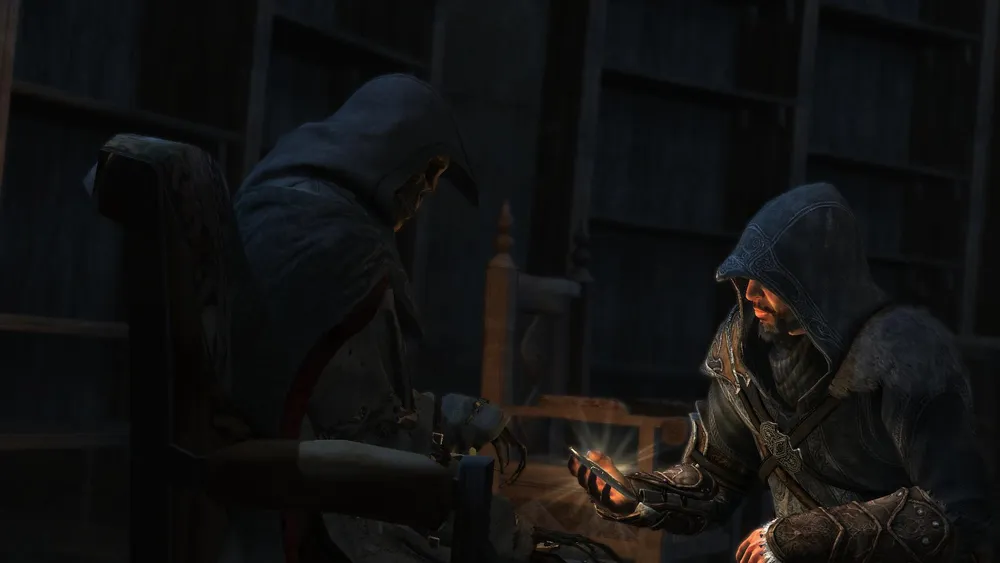 Заигрывания с неочевидными аллюзиями и метанарративами решено было вывести за рамки основного сюжета, дабы не перегружать его всякой «заумью». Так в игре появился особый вид побочных заданий – «Истина», или глифы – логические головоломки, прохождение которых вознаграждалось информацией о вековом противостоянии ассасинов и тамплиеров, разнообразных частицах Эдема и прочими сведениями по лору. По сути, в них в неявном и сжатом виде был представлен план развития серии на несколько частей вперед, по «Синдикат» включительно. Содержание же главной сюжетной линии, напротив, чуть менее чем полностью сводилось к истории мести главного героя, чьи отец и браться погибли по вине тамплиеров – одного за другим он лишает жизни тех, кто повинен в смерти его родных. Такое разделение позволяло удовлетворить запросы и глубоко погруженных в лор фанатов, и просто любителей экшена. (Этим приемом разработчики воспользуются еще не раз. В «Assassin's Creed IV: Black Flag» львиная доля сведений, расширяющих лор, но непосредственно не связанных с событиями игры, будет помещена во внутриигровые документы, необязательные к поиску и прочтению. В «Assassin's Creed Истоки» контент, имеющий отношение к Предтечами, превратится в разновидность побочных активностей по сбору коллекционных предметов, а в «Assassin's Creed Одиссея» он будет выделен в отдельную, ответвляющуюся от основной сюжетной линии, последовательность миссий, по большому счету опциональных.)