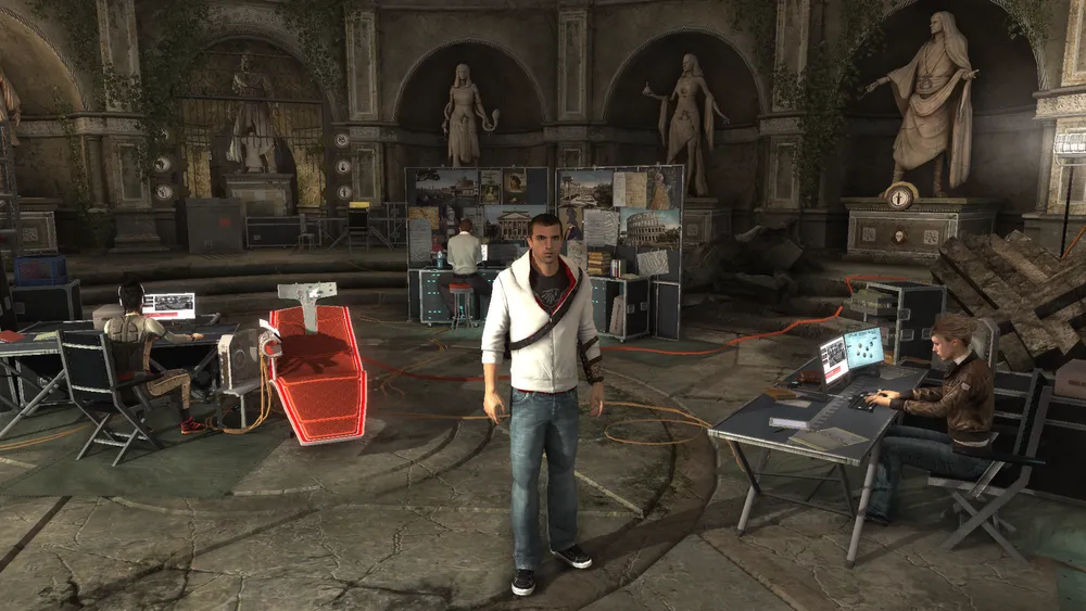 Впрочем, одним арабским Средневековьем «Assassin's Creed» не ограничивался. Были еще и наши дни. Помимо истории ищущего ответы на непростые вопросы ассасина Альтаира ибн Ла-Ахада из Масиафа, была еще история ничем не примечательного на первый взгляд бармена из Нью-Йорка по имени Дезмонд Майлс – прямого потомка Альтаира. Ураганные, наполненные беготней и схватками миссии в прошлом чередовались со спокойными, выполненными в духе «симулятора ходьбы», но отнюдь не бессобытийными миссиями в настоящем. Как боец мистер Майлс даже в подметки не годился своему героическому предку, но зато обладал умением подмечать неочевидное и искать нужную информацию. Главное, чтобы тем же умением не был обделен и геймер, иначе он рисковал пропустить львиную долю интересностей, играя за Дезмонда. А пропустить их проще простого, ведь в настоящем нет ни четко сформулированных заданий, ни даже каких-либо подсказок, что можно что-то искать и найти (с первой игры и по «Одиссею» включительно современность была и остается полностью безынтерфейсной частью любого «Аssаssin's Crееd»). Вот и жаловались в свое время невнимательные игроки и обзорщики, будто в настоящем делать абсолютно нечего, кроме как разговоры слушать, да неспешно дефилировать в пределах замкнутого пространства из двух помещений. Перед дотошными же вместо одной истории противостояния ассасинов и тамплиеров раскрывались сразу две – тогда и теперь, такие разные и такие похожие, тесно взаимосвязанные, ибо борьба свободы (не путать с вседозволенностью) и прикрытой красивой демагогией деспотии извечна и, похоже, бесконечна, а мир, несмотря на все попытки его улучшить, как раньше, так и сейчас продолжает пребывать в дерьме.