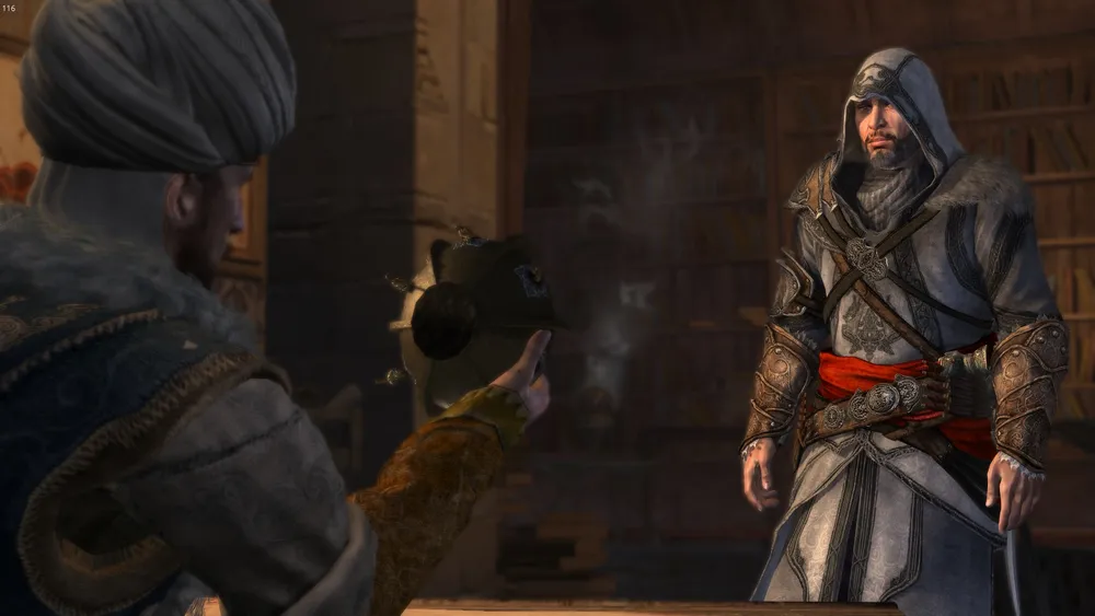 Если не считать бомб и клинка-крюка, то в остальном, я имею в виду геймплей, «Откровения» не далеко ушли от «Братства Крови», а в чем-то даже и шагнули назад. Орлиное зрение, переименованное в орлиное чутье, чуток допилили. Теперь оно показывало не только самих врагов, но также маршрут их передвижения (надо же знать, куда бомбы-растяжки ставить), а в ряде миссий работало еще и как зрение детектива, позволявшее выслеживать цель по оставленным ею следам (годы спустя нечто подобное появится в «Истоках»). Получение сетов легендарной брони (в «Revelations» их неожиданно стало два, но с идентичными характеристиками) более не было связано с прохождением серии паркур-головоломок ради ключей. Вместо этого в одном случае надлежало прокачать нескольких рекрутов-ассасинов до максимального уровня (мини-игра по управлению собственным Братством), а в другом – усиленно фармить коллекционные предметы: нахождение 25% всех фрагментов Анимуса разблокировало для покупки во внутриигровых лавочках карту со страницами мемуаров Исхак-паши, полная коллекция коих, в свою очередь, открывала доступ к миссии по получению доспехов.