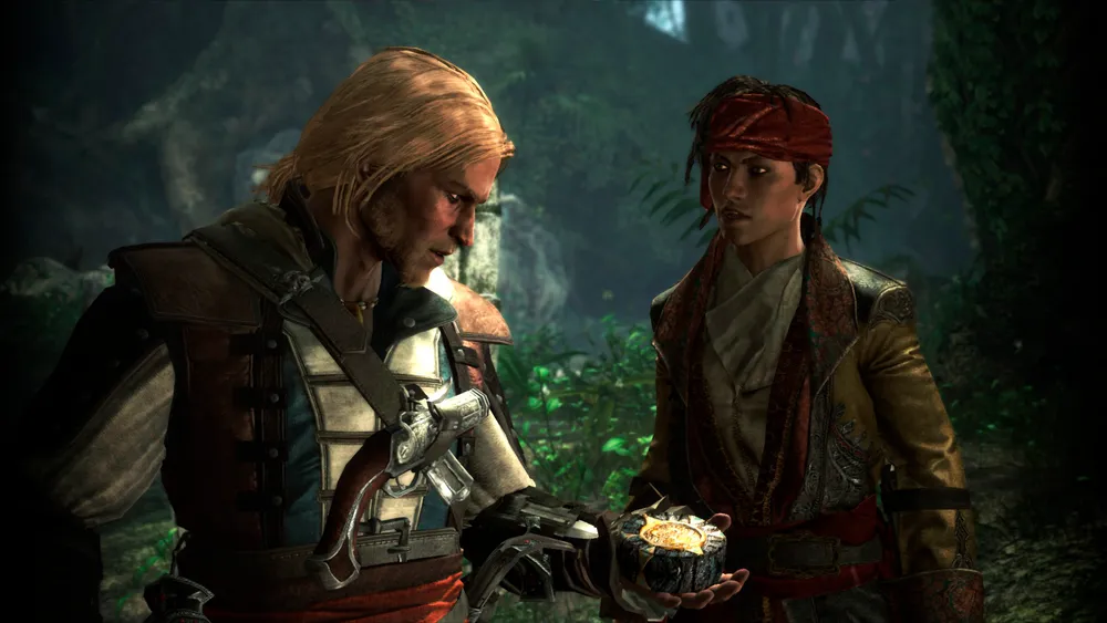 Нашлось место в игре и головоломкам. Наиболее занятные из них поместили в настоящее (см. выше), но и на долю прошлого кое-что оставили. Стелы майя – визуальные пазлы по совмещению объектов и изображений, перекочевавшие из третьего «Ассасина». Наградой за решение таких загадок служили камни майя – коллекционные предметы, полный комплект которых открывал доступ к костюму майя – одному из двух топовых прикидов, не только меняющих внешний вид героя, но и дающих бонус к его характеристикам. В триквеле визуальные пазлы встречались в одной-единственной миссии, но в «Черном флаге» их поставили на поток, тем самым закрепив введенный создателями «Assassin's Creed: Revelations» принцип получения уникальных одеяний за рутинный фарм множества коллекционных предметов или выполнение длинной последовательности однообразных заданий. Эта малоприятная гринд-фича будет присутствовать в подавляющем большинстве последующих игр, и лишь в «Assassin's Creed Одиссея» ситуация с выбиванием легендарных сетов брони изменится к лучшему.