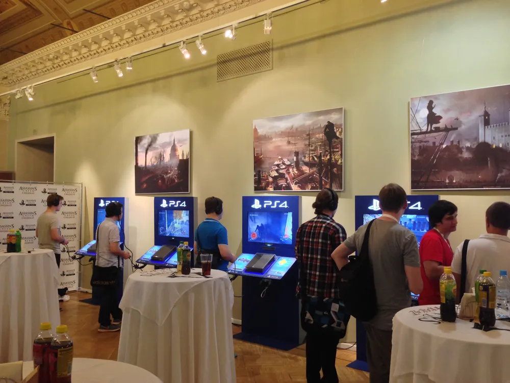 Решив не откладывать на выходные то, что можно сделать в будние, я отправилась на ассасинскую презентацию в пятницу. Вопреки ожиданиям не было ни столпотворения, ни толкотни, ни очередей к игровым местам. То ли мне просто повезло попасть туда во второй половине рабочего дня, то ли все так удачно было организовано и спланировано заранее, но все происходило спокойно и без суеты. У входа в музей посетителей встречали приветливые регистраторши. Они же обменивали пропуск на билет и выдавали купон, предоставляющий единовременную скидку 50% на приобретение продукции Ubisoft в сети магазинов «1С Интерес». Стендистки в демо-зоне, тоже очень любезные и внимательные, каждого гостя персонально провожали к свободной в данным момент консольке и помогали запустить миссию. От них же я получила брендированый ланьярд и памятный бейджик с надписью: "Я играл первым".
