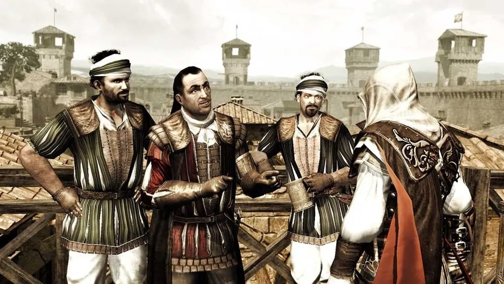 Сторонние персонажи игры остались прежними: Катерина Сфорца, Леонардо Да Винчи, Николо Макиавелли – будут всячески помогать нам на нашем пути. В «Братстве» управлять анимусом будет наш старый знакомый Дезмонд Майлз. Правда, о нем ничего не известно.