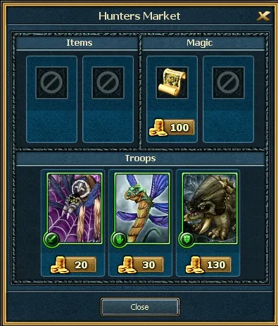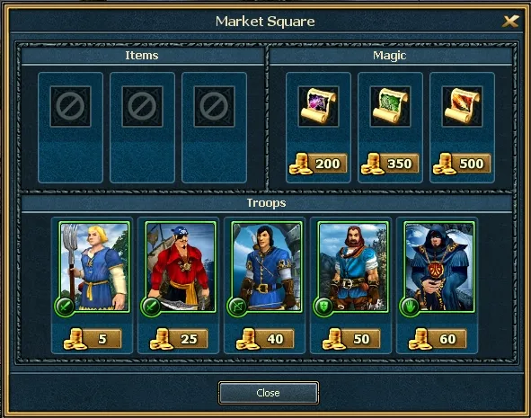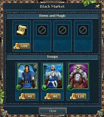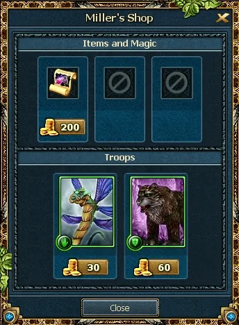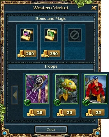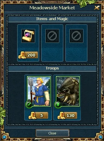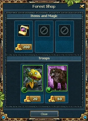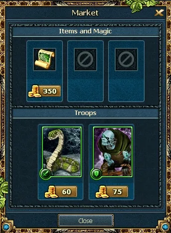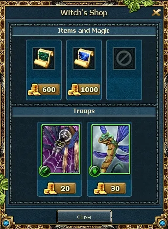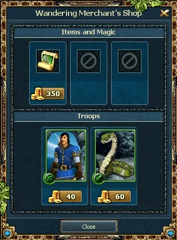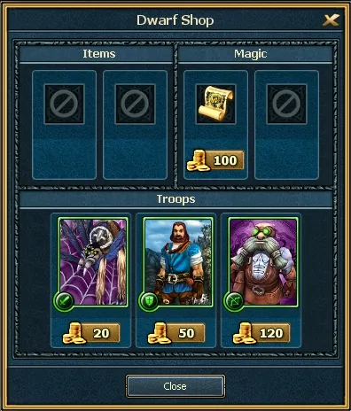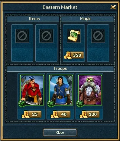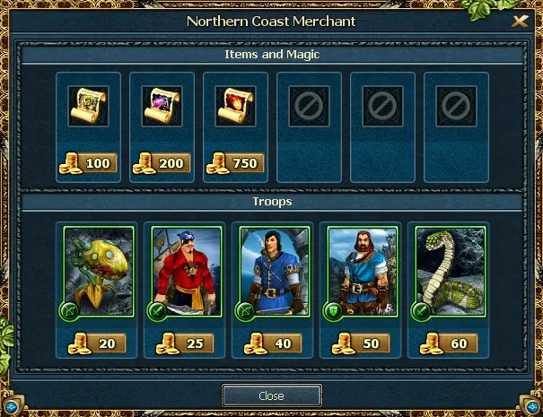 есть свой магазин. В каждом магазине свой ассортимент товаров, и запомнить все довольно сложно, а ходить от локации к локации в поисках нужного товара, используя при том драгоценную энергию, мягко говоря не выгодно. Помню как сам, поначалу, оббегал по пол карты в поисках нужного свитка или недостающих юнитов.