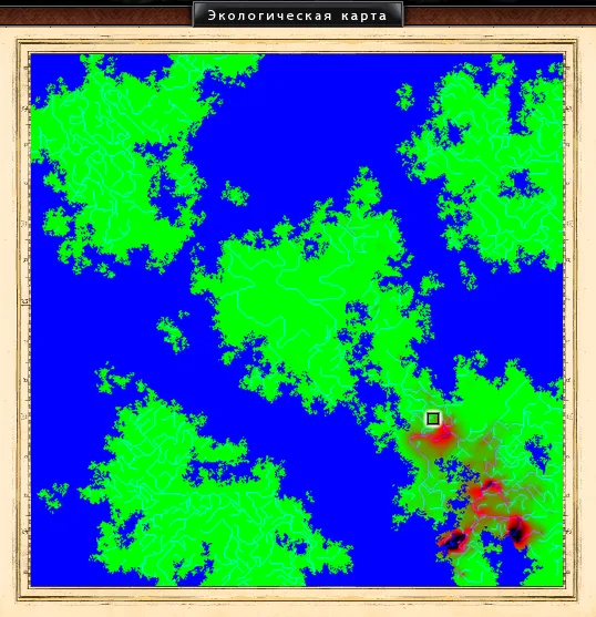 В меню «Карта» появилась вкладка «экологическая карта». На данном этапе игры 10-го сервера выглядит она так: