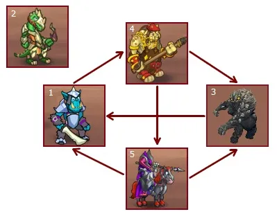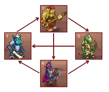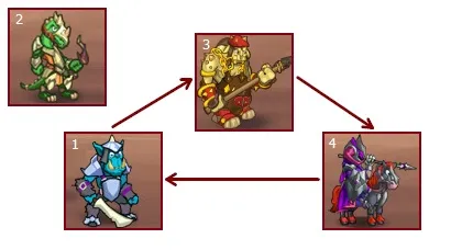 В этой схеме лучники исключены из классового взаимодействия, а наносимый ими урон значительно понижен. В результате сложилась такая ситуация, что вначале игрок получал мечников, потом лучников, а потом копейщиков, которые однозначно проигрывали мечникам в бою. Другими словами, те игроки, которые пытались использовать копейщиков до появления конницы попадали в заведомо проигрышную ситуацию. Правильный порядок доступных бойцов должен был выглядеть так: сначала копейщики, потом лучники, а после них - мечники.