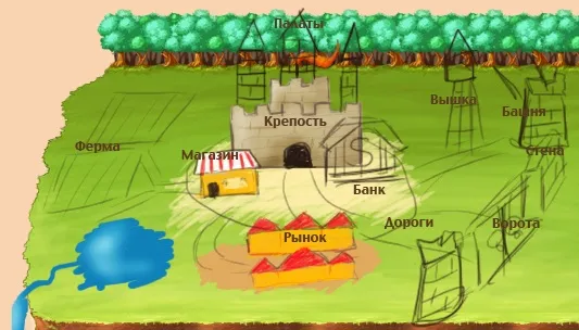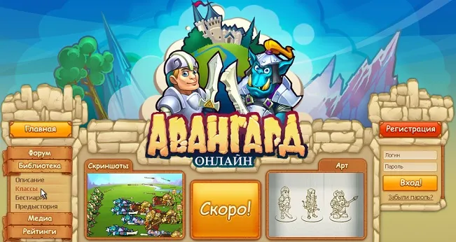 Тем временем наши художники взялись за графику для сайта игры. Главная страница сайта - это важнейший фактор успеха браузерки. Именно ее внешний вид определяет первое впечатление от игры, и нам очень хотелось, сделать его максимально привлекательным. Мы долго обсуждали, спорили, переделывали и снова обсуждали разные варианты, пока наконец не получили желанный эскиз.