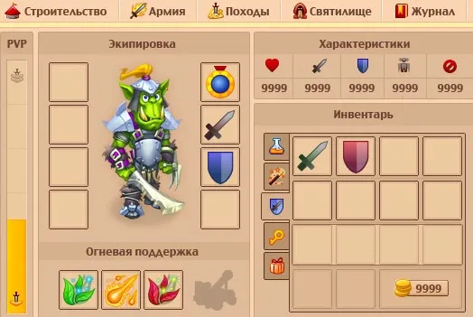 Ранний эскиз персонажа. Внизу экрана еще есть слоты магии и осадного орудия...