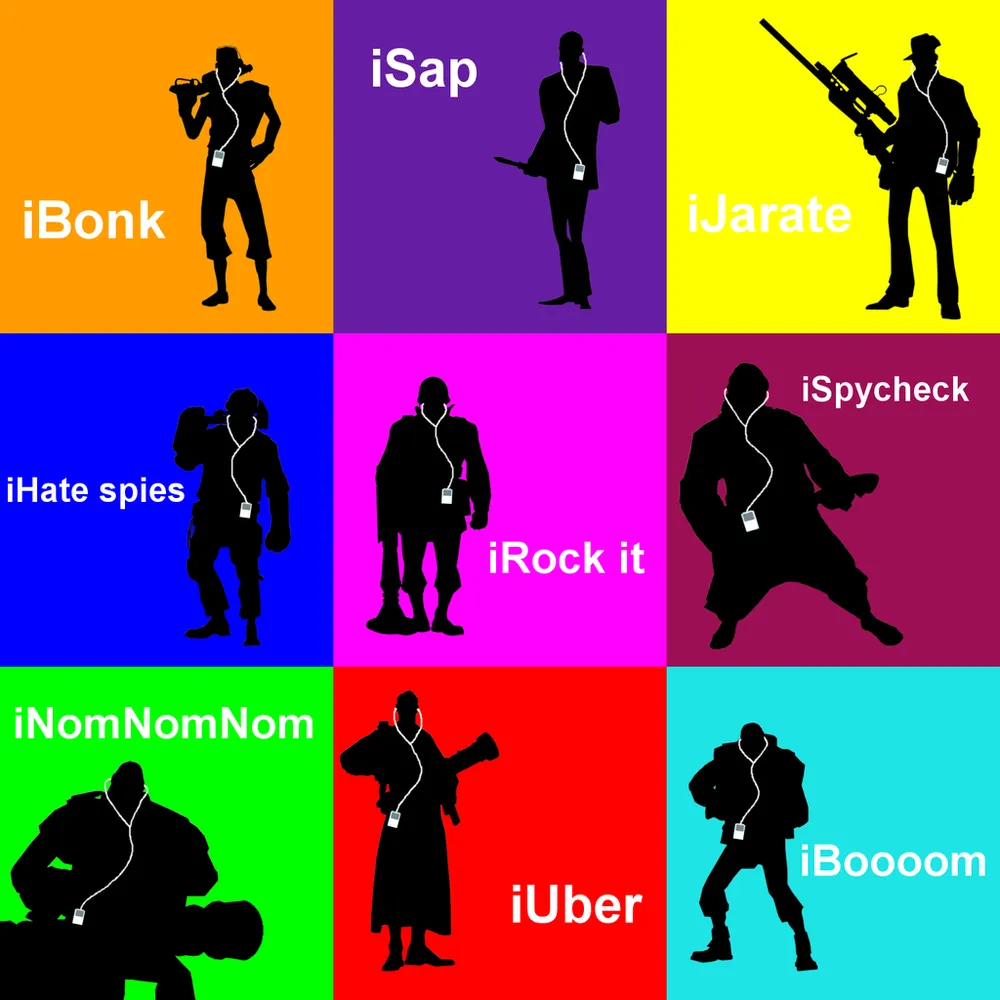 Сегодня хочу представить вам набор аватарок, выполненных в стиле iPod и, конечно, Team Fortress 2. Каждая аватарка сопровождается iФразой, в некоторой степени характеризующей данный класс. Для удобности все находится под спойлерами. Открываем и смотри!