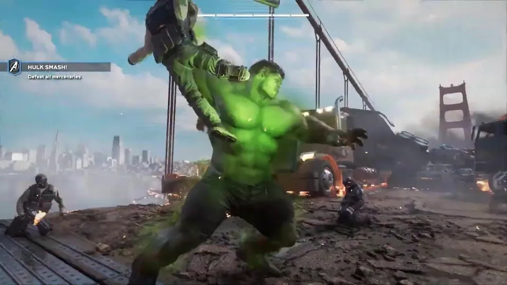 В прологе к Avengers нам показали битву на мосту, где мы движемся по отрезку от пункта «А» к пункту «Б». А что если этот мост можно было бы снести? Просто разрушить несколькими хорошими взрывами или мощными ударами Мьёльнира. Теперь давайте мыслить масштабно: что если действие перенесется в оживленный район города, наполненный высотными зданиями? Вот Халк хватает ближайшую машину, размахивается и запускает ее в группу роботов. Машина и ошметки врагов врезаются в ближайший дом, пробивают несколько стен и оставляют завалы. Потом тот же Халк, спеша на помощь коллегам, пробивает дом насквозь, или, разрушив несколько этажей забирается на крышу. Если забыть о мерах предосторожности и войти в боевой раж, в конце битвы от района останутся одни руины и много пострадавших людей. Здесь можем вспомнить противостояние Халкбастера и самого Халка во вторых Мстителях.