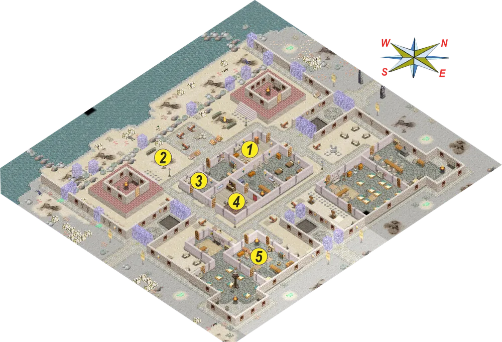 1 – командир Марвин. 2 – магический пилон. 3 – агент О`Рурк. 4 – малый храм. 5 – квартирмейстер Джордж.