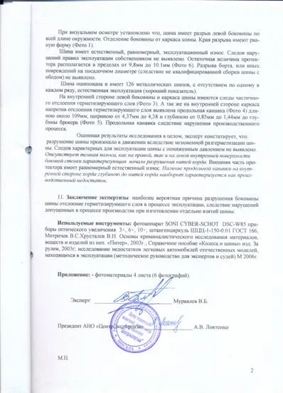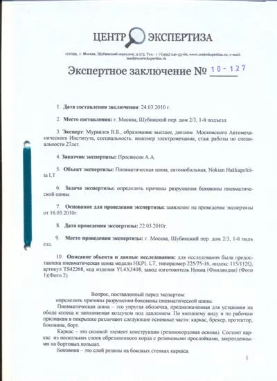Прочитав этот бред я договорился с продавцом, что мы отправим эту шину на независимую экспертизу. И надо отдать должное продавцу (www.vianor-moscow.ru), они строго в соответствии с законом о правах потребителей за свои деньги отправили данную шину в указанный мной независимый экспертный центр.
