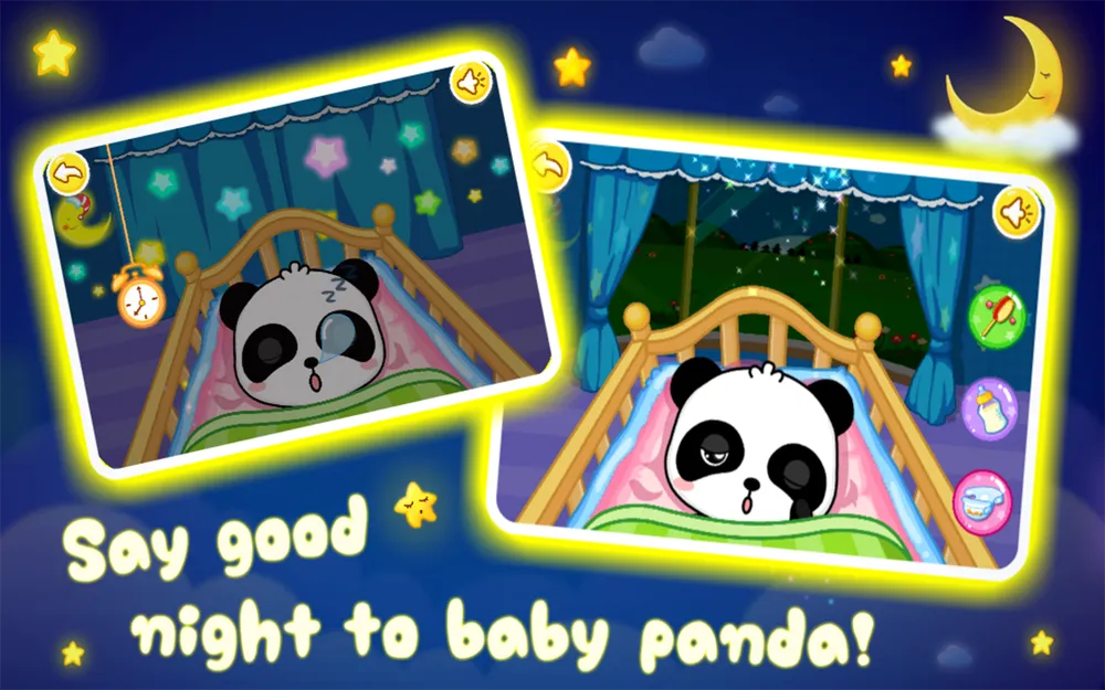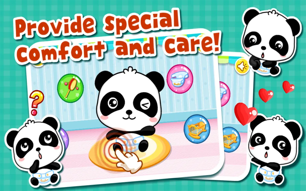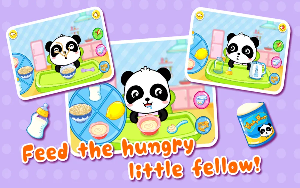 Малыш панда еще совсем маленький и нуждается в твоей помощи. Подари ему своё внимание и заботу. Ты можешь играть с ребенком панды, кормить его, ухаживать за ним и укладывать его спать.